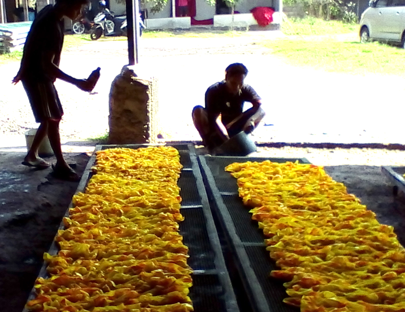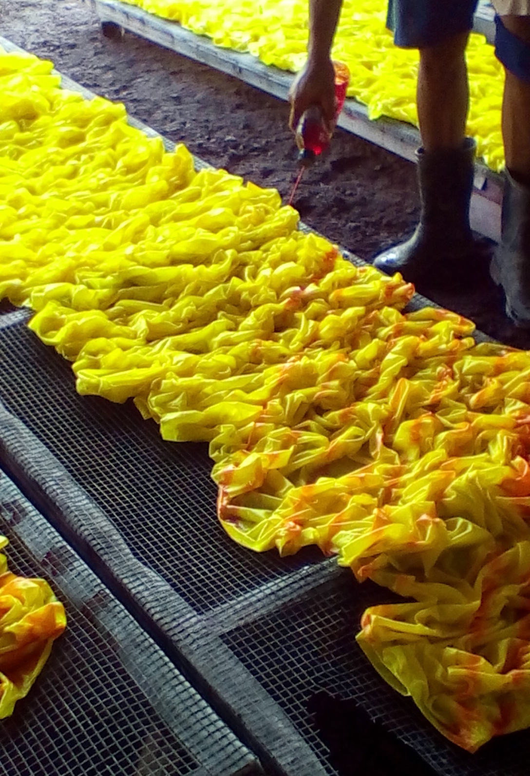 Watching fabric being printed in Bali was enlightening. The fellows actually dying and printing the fabric are mostly from Java. They come to Bali for seasonal work, when it is not the rainy season. They stay for weeks at a time, away from their families. They sleep and eat in the factory, cooking their own meals. The Australian manager of this particular facility referred to them fondly as his “boys.”