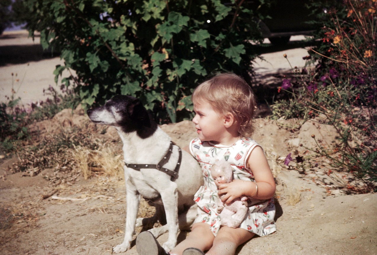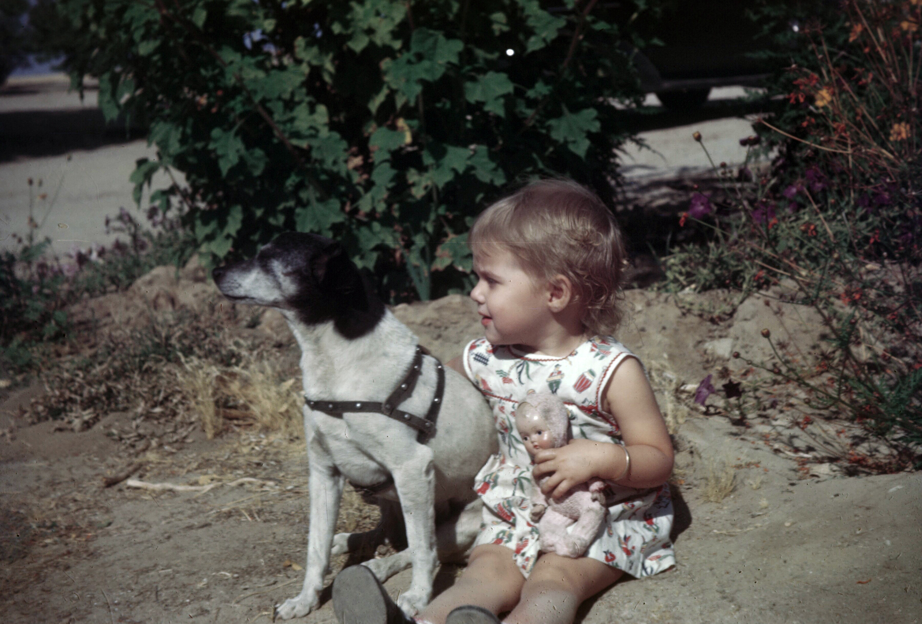 In the photos, I am probably two years old. I remember that dog, though not it’s name. I do not remember the doll.